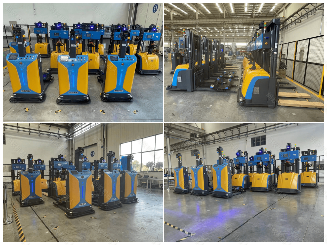 經歷了嚴謹周密的生產、組裝、調試工序,數十臺螞蟻機器人(包括叉車和潛伏舉升AMR),在潛伏、叉取等多類型AMR混合調度的指揮下,完成場內各道工序間的自主作業,順利通過出廠測試,奔赴新征程!
